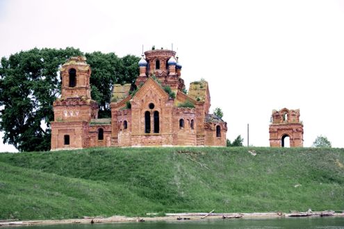 Слева: склеп купцов Кирьяновых. Вид с р. Камы