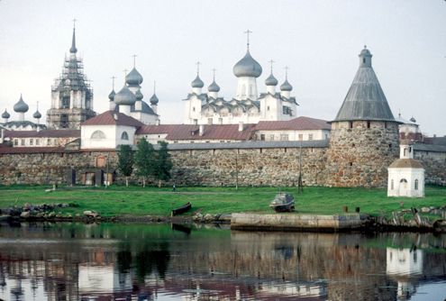 From left: Dormition church, bell-tower, Gate church of the Annunciation, church of Saint Nicholas, Transfiguartion cathedral, Priadilnaia tower, Saint Alexander chapel
