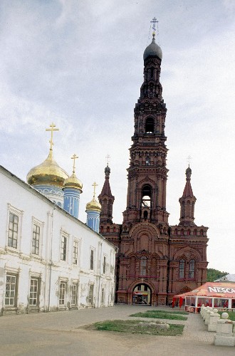 Слева: Богоявленский собор; справа: колокольня