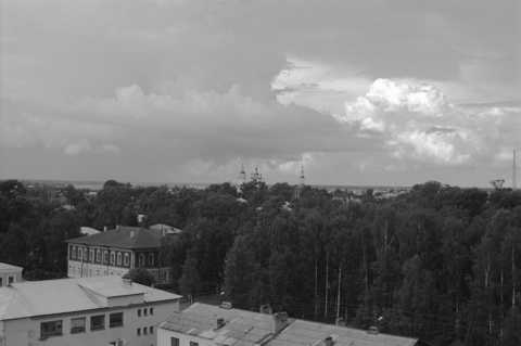 Панорама с колокольни Успенской церкви — слева ул. Володарского, в центре церковь Входоиерусалимская церковь, справа — церковь Рождества Христова