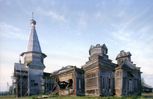 Слева: Ильинская ц., справа: руины Тихвинской ц.
