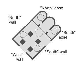 Cathedral is oriented to the north-east (enstead traditional east direction). But for convenience, at descriptions of interior, this circumstance is ignored
