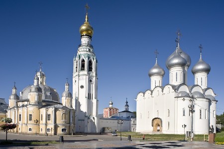 From left: Cathedral of the Resurrection; bell tower; Church of the Nativity of Christ; gate church of Elevation of the Cross; Cathedral of Saint Sophia