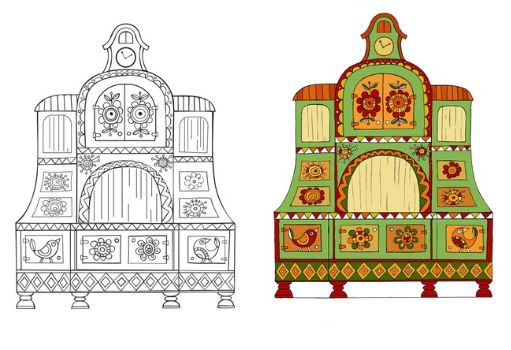 Отправляйся в «театральную мастерскую»! Художники вологодского театра кукол «Теремок» создали коллекцию картинок-раскрасок по спектаклям из репертуара театра. Попробуй расписать в технике пермогорской росписи шкаф – элемент декорации спектакля «Ладушки». Переходи по ссылке, распечатывай или срисовывай раскраску и твори.