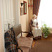 Парадный зал голубой гостиной барского дома венчает бронзовая люстра, французские шторы из натуральных тканей элегантно вписываются в классический интерьер, в гостиной ровными рядами стоят венские стулья, а также кресла из карельской березы, стол с лировидным подстольем*, старинное зеркало, столик для игры в карты, шкаф красного дерева. Многие годы мебель и прочие предметы быта дворянского гнезда разыскивались сотрудниками музея по всей стране.