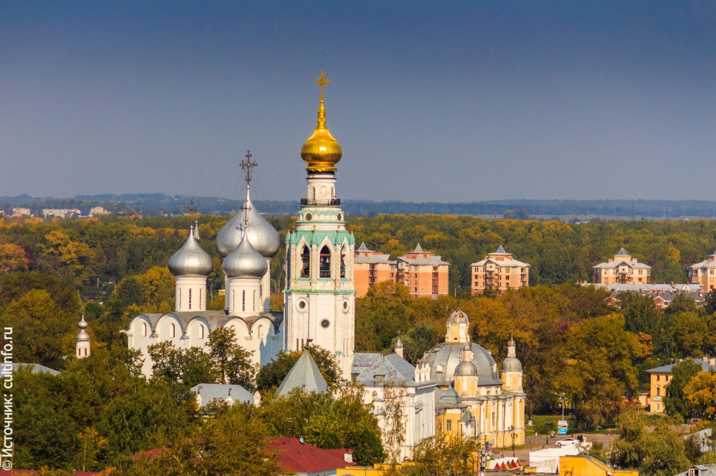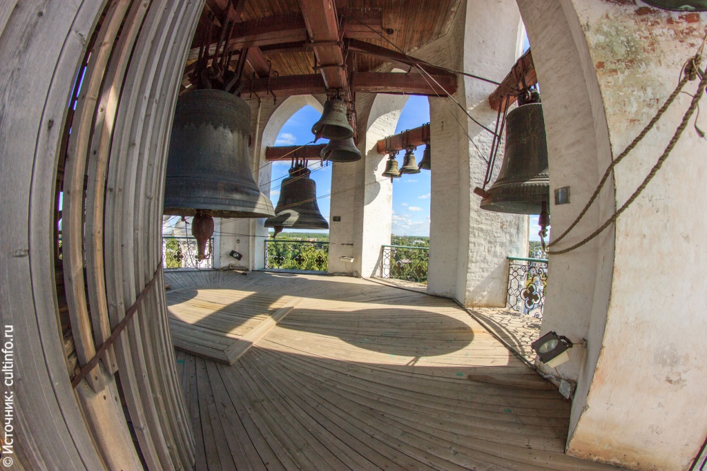 Колокольня Софийского собора – древнейший церковный памятник Вологды, Софийский собор до сих пор играет важную роль в общем ансамбле города. Между Софийским и Воскресенским соборами возвышается колокольня, соприкасающаяся с восточной стеной Архиерейского двора.