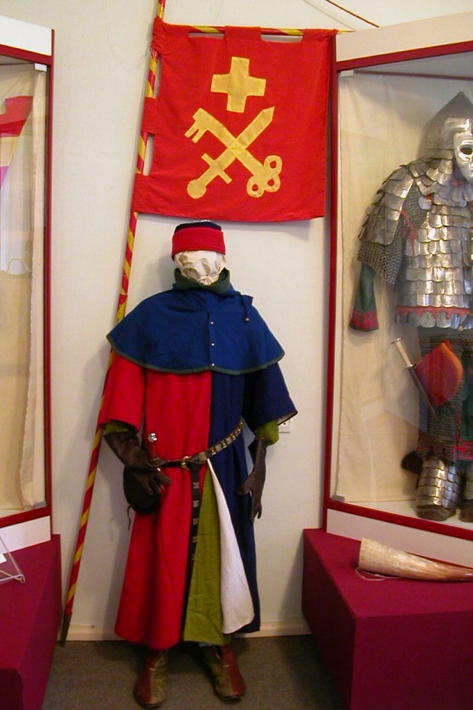 Требования очень высокие. Во-первых, в одежде и в оружии все до мельчайших деталей должно соответствовать историческим источникам. Европейское подразделение – Дерптское епископство (Прибалтика XIII века) – использует Библию Мациевского, Манэсский кодекс, славяне используют иконографию, фрески. Читаем специальную литературу, ищем информацию в Интернете, следим за последними достижениями археологии. Во-вторых, человеку не разрешается делать доспех, пока он не сделал гражданский костюм. Это своего рода проверка и тренировка. Потом можно приступать к изготовлению доспеха и оружия, а там и поупражняться в фехтовании.