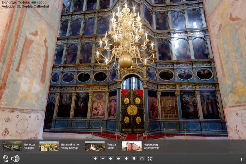 Наша история неразрывна, один факт цепляется за другой, и их можно понять только в контексте. Например, в рамках виртуального тура мы показываем часть экспозиции Вологодской областной картинной галереи в Шаламовском доме, посвященную семье Шаламовых. И попутно привлекаем внимание к фигуре писателя Варлама Шаламова, детство которого прошло здесь, на Соборной горке. В Софийском соборе служил отец писателя, Тихон Шаламов, до этого более десяти лет бывший миссионером на острове Кадьяк на Аляске. И мы воспользовались этим поводом, чтобы показать уникальный интерьер Софийского собора. Посетитель может «зайти» туда в любую погоду и в любое время года, осмотреться – и потом обязательно побывает там «на самом деле», тем более что теперь собор открыт после многолетней реставрации.