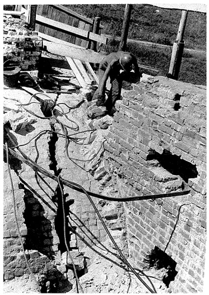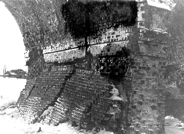 Внешний вид моста не вызывал особых опасений – до того момента, пока мы не приступили к исследовательской работе и не обнаружили, что это «колосс на глиняных ногах». На устоях моста отслоившуюся кладку 70-х годов можно была снимать голыми руками, а в глубине подлинный кирпич и кладочный раствор XIX века мизинцем крошились в труху.
