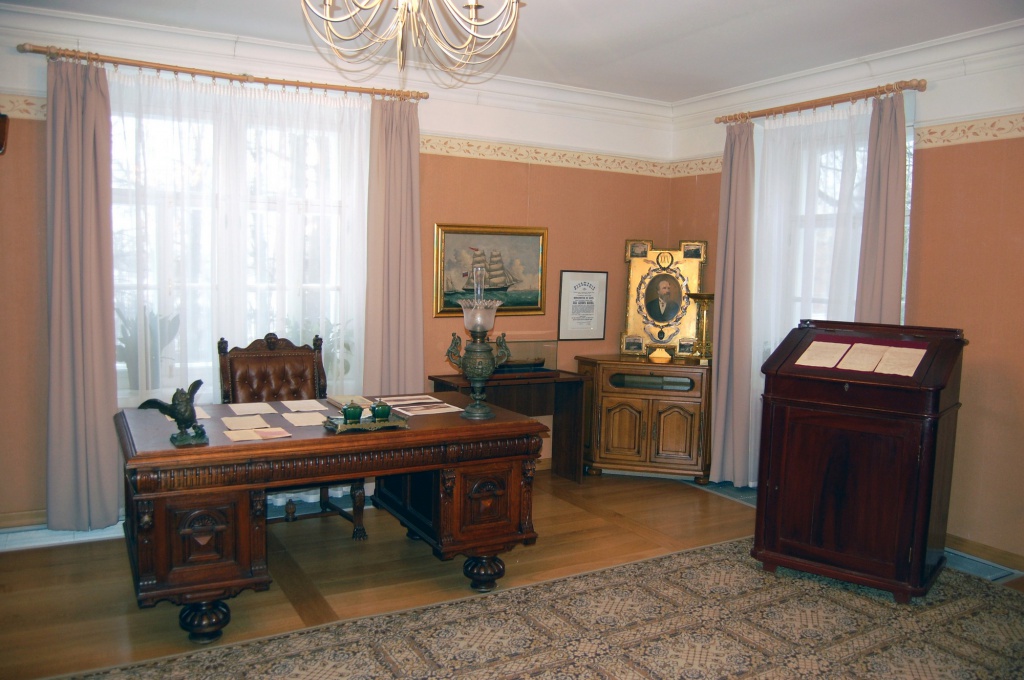 Подлинных вещей, принадлежавших самому Милютину, в собрании музея немного: это его записи и фотографии, портрет в бронзе, преподнесенный ему горожанами на юбилей правления, картина «Бриг “Шексна”» и американский флаг, подаренный Милютину американским послом Густавом Фоксом. Все остальное «приближено к эпохе» – это вещи второй половины XIX века и мебель стиля модерн, соответствующие быту того социального слоя, к которому принадлежала семья Милютиных, но приобретены они в разных местах – в Петербурге, в Устюжне. Многие из этих вещей тоже имеют историческую ценность. Например, стол, за которым сидел устюженский городской голова Яков Поздеев, сейчас находится в нашем музее. За таким же столом мог работать и Милютин.