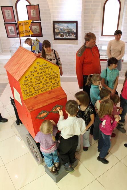 Открытием для нас стало то, что раёк (косморама), где крутятся лубочные картинки, и книжная лавка стали одними из самых любимых экспонатов на выставке. Причем не только детей, но и взрослых. Как и зрители в XVIII-XIX веках, они с любопытством заглядывали в раёк, рассматривали картинки, слушая при этом звонкий голос раёшника. Посетители с удовольствием фотографировались рядом с этими конструкциями. После закрытия выставки они останутся в музее и будут использоваться на занятиях с детьми.