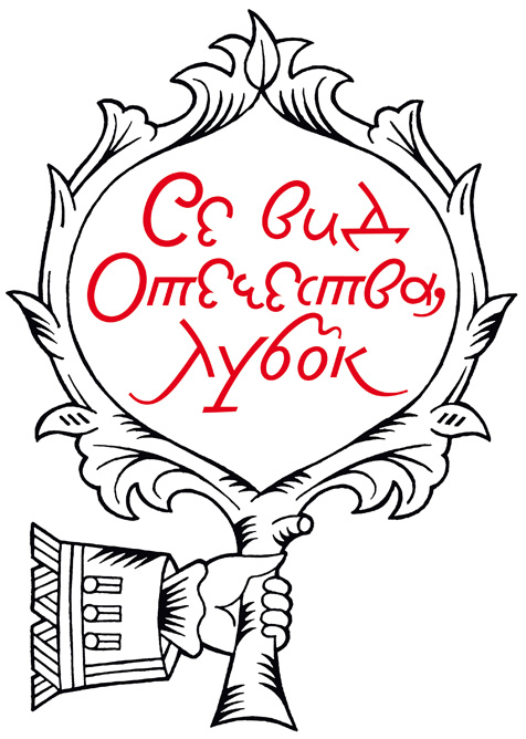 Ю.В.: Элементы фирменного стиля, который стал частью рекламы проекта, разработал художник проекта Сергей Трубников, а в готовых продуктах проекта воплотил дизайнер Антон Квасоваров. Мы долго спорили по поводу того, что может быть логотипом. В результате выбрали руку с зеркалом, в котором заключено название проекта «Се вид Отечества, лубок». Рука, которая держит чашу или основание древа, часто встречается в лубочной картинке, а мы ее лишь стилизовали. Когда выбирали цветовое решение, остановились на черно-белом с красным шрифтом. Сергей Трубников нарисовал и забавных мышей, которых мы придумали. Первоначально они предназначались только для раскраски, но в результате стали элементами оформления в интерактивных зонах итоговой выставки. Эти изображения созданы на основе образов мышей из традиционной лубочной картинки «Как мыши кота хоронили». У нас сделано несколько мышек с разными атрибутами: в треуголке, с дудочкой, свитком, мастерком, барабаном.