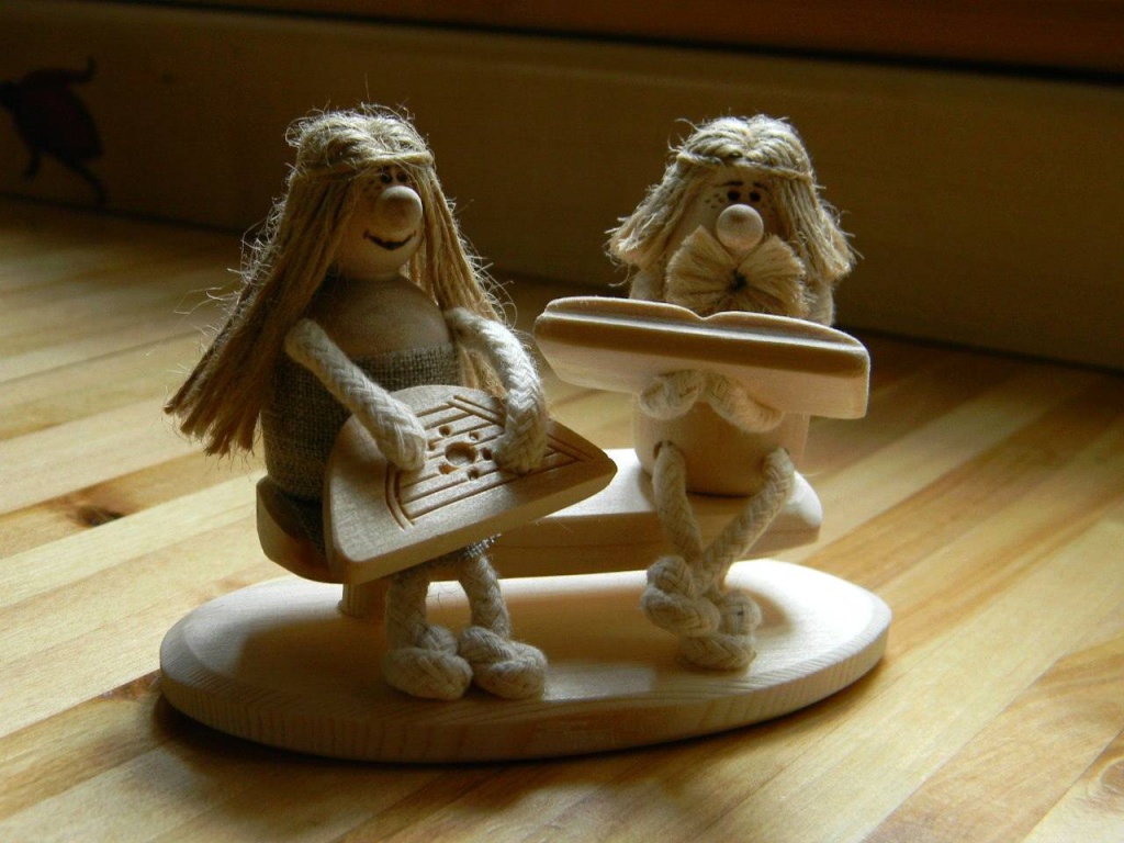 Если это авторская игрушка на традиционную тему, то и поиск идет в русле традиции. На выставке у меня есть кукла-панка, вырезанная как одно целое с конем. Возможно, такое и раньше делали, просто подобные образцы не сохранились, а может, и нет. А чисто авторская игрушка – это, например, «Деревенька». Это миниатюрные фигурки деревенских жителей, погруженных в свои повседневные дела. Там около 50 персонажей, и про каждого написано в стихах, чем он занимается: плотник строгает бревно, музыкант играет на гуслях, женщина нянчит ребенка. Традиционный деревенский быт мне хорошо знаком – прекрасно помню, как моя бабушка гладила белье при помощи рубеля и катка, – и в авторской игрушке я строго следую обычаям. Бывает, меня просят сделать такую фигурку с компьютером или другим атрибутом современной жизни – таких заказов я не беру.