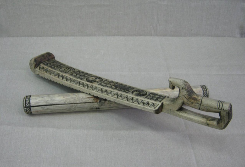 Чтобы наработать первоначальный навык, режешь одним только ножом-косяком, а вообще в мастерской у меня инструментов много. Современные резчики применяют и электроинструмент, чтобы как-то облегчить труд. Если всё полностью делать руками, то можно серьезно повредить мышцы, и зрение тоже страдает. А если на мастер-классе что-то показываешь, в ход идут только ножовка, топор и нож. Все ножи-косяки я делаю сам, а вот клюкарзу – полукруглую стамеску для вырезания углублений деревянной посуды – заказывал кузнецам.