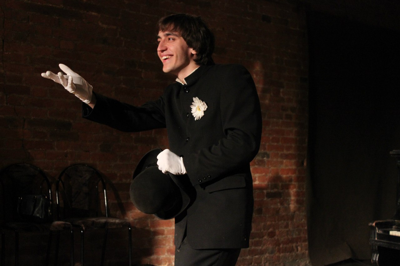 Я пришел на ввод в готовый спектакль, но когда стало понятно, что спектакля не будет, я уже чувствовал себя частью театра, мне не хотелось уходить. Сначала я вёл спектакли, носил колонки, помогал ставить свет, грузил в «Газель» аппаратуру и декорации – мы же тогда были без помещения, играли в разных местах. Первый выход на сцену запомнился ощущением полного провала. Это был новый спектакль «Классика.ру», который мы репетировали у Якова Романовича дома, потому что больше было негде. Декорации развалились, диск с музыкой не читался, мы переволновались. Но уже второй показ прошел намного лучше.