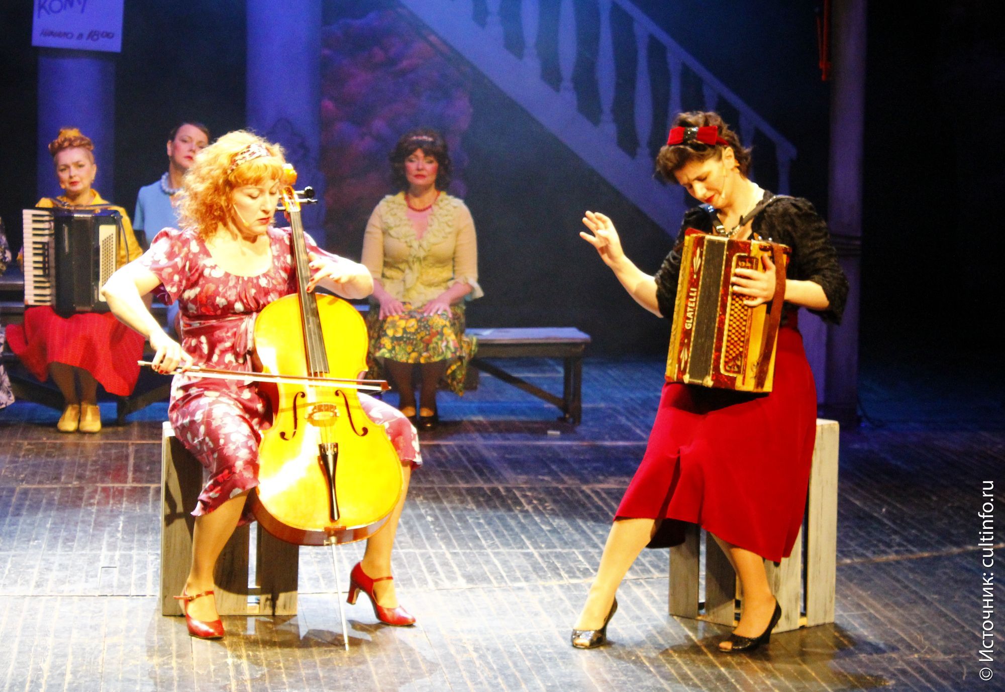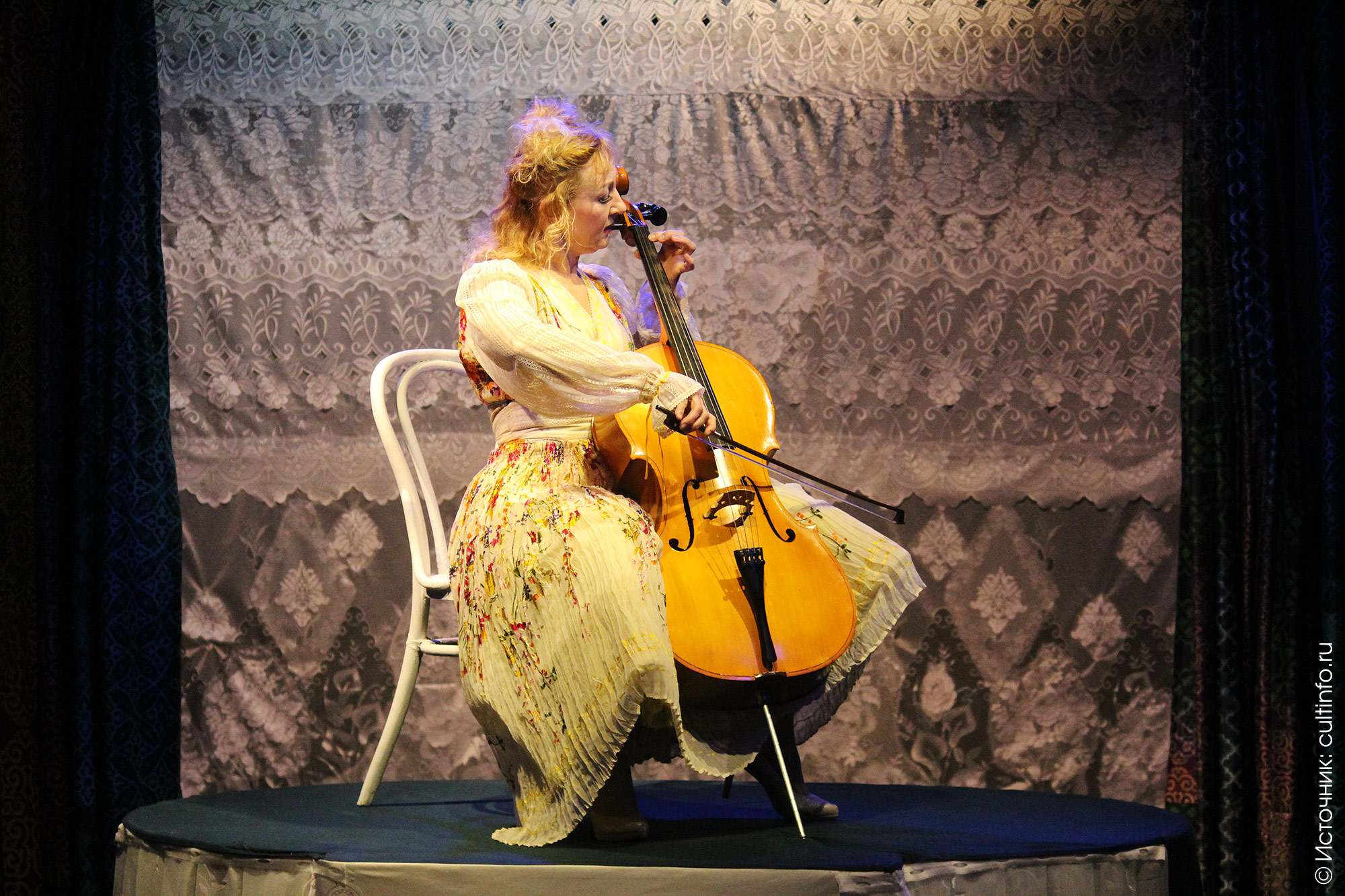 Музицировать – подходящее слово, именно этим мы в театре и занимаемся. К нам не предъявляют требований играть на высоком профессиональном уровне – для этого можно пройти несколько кварталов до областной филармонии. А Ольга Ильинская может играть как угодно – не в этом суть. С музыкой у нас так было: вы же умеете – давайте попробуем. Конечно, и сложнее происходит работа над ролью, но и, несомненно, интереснее. Нас постановщики спектаклей поддерживают, помогают. А иначе откуда смелость, если я, к примеру, виолончель последний раз в руках держала лет 20 назад?..