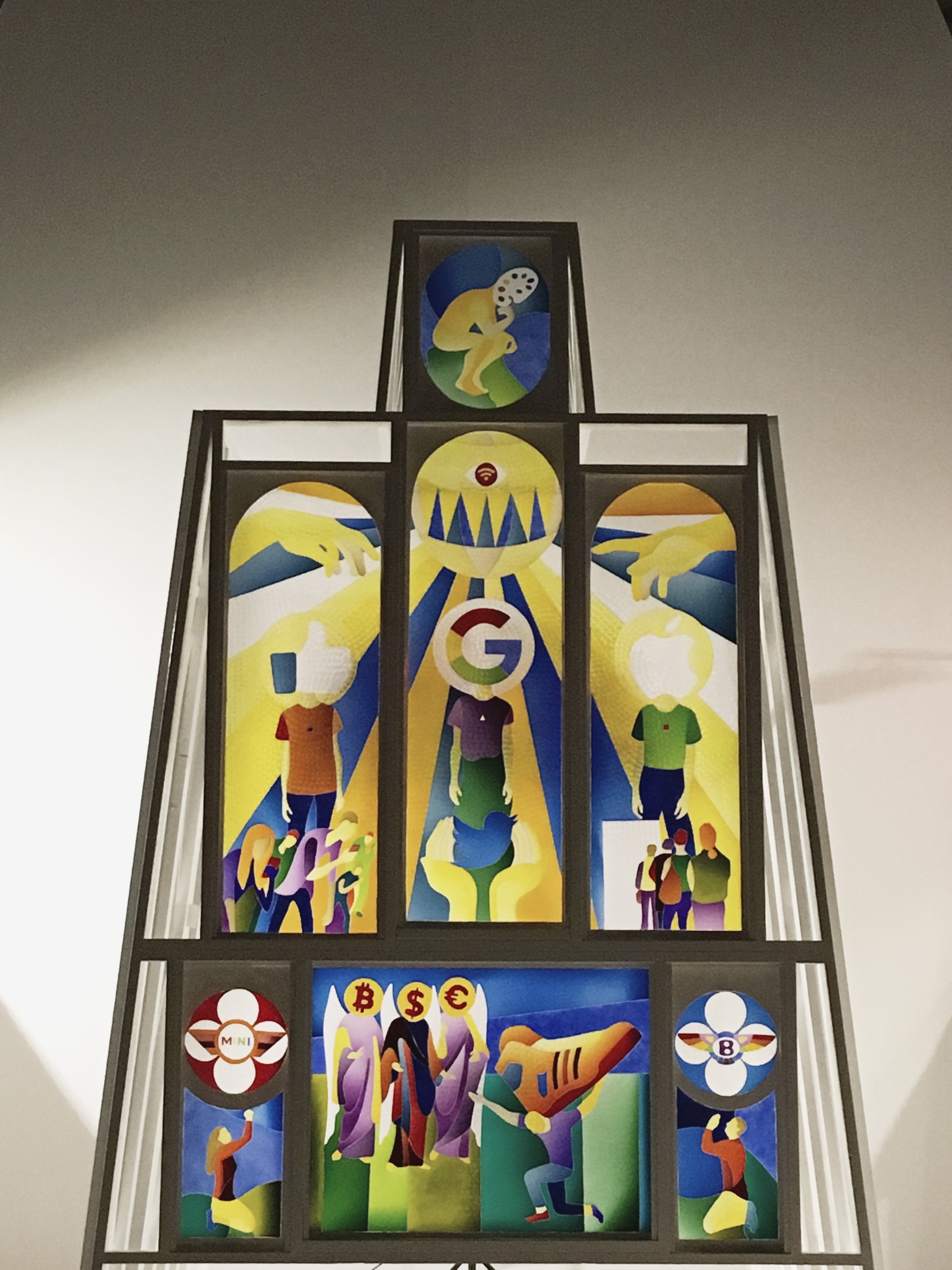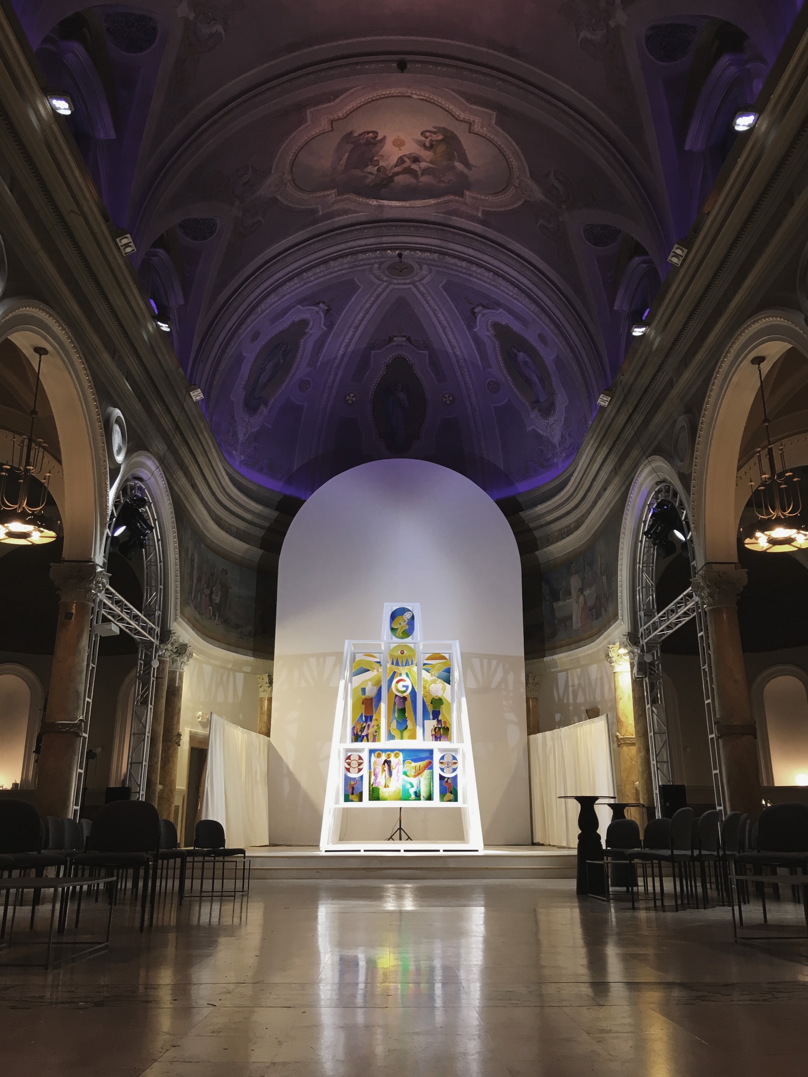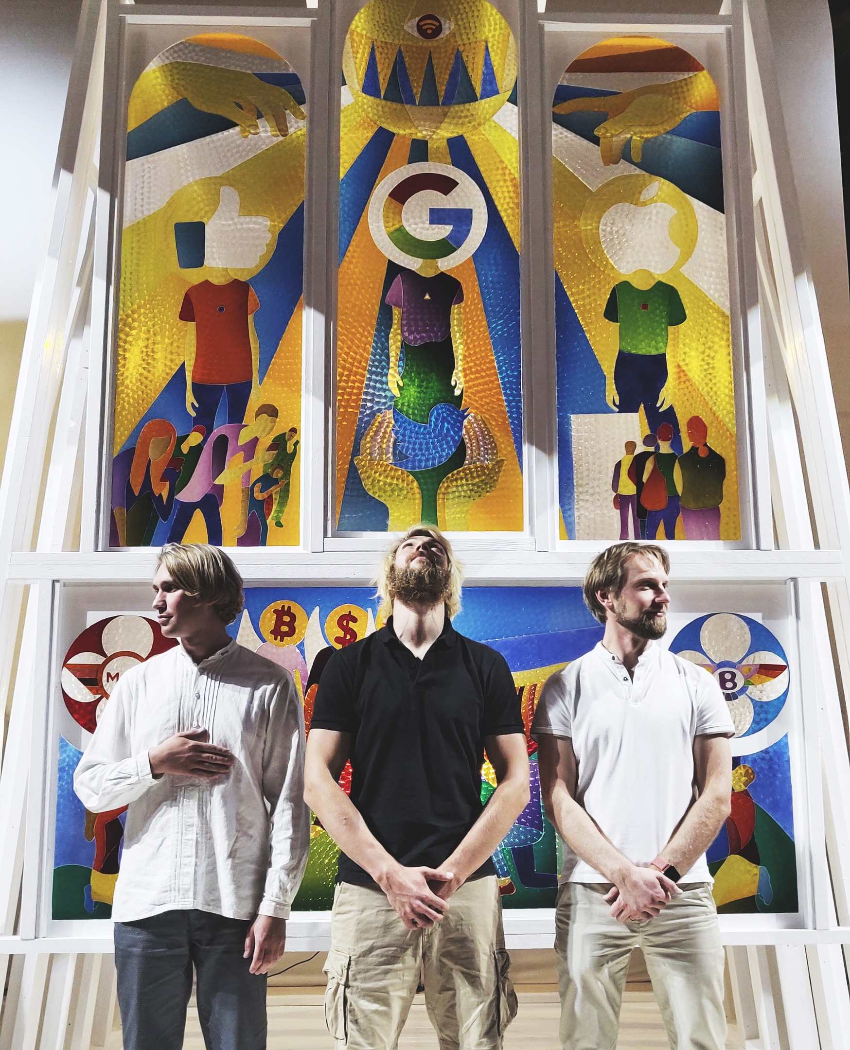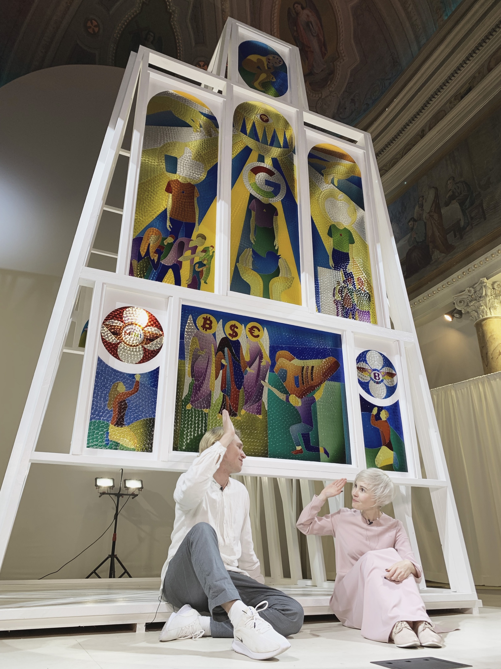 Мы с художником Натальей Львовой представили этот проект месяц назад: построили свою «церковь» внутри настоящей церкви. Это объемная история, в которую ты можешь зайти и обновиться. Название проекта – «Новая религия», и он посвящен рефлексии на тему того, как современные бренды заменяют человеку определенные чувства, связанные с верой во что-то. Фактически новая религия – это жажда обновлений, молитва о том, чтобы ты был всегда в тренде, чтобы у тебя всё было самое новое и последнее, а когда ты хочешь узнать что-то, то обращаешься не к Библии, а к интернету. Мы заполнили витражи церкви «ликами» современных брендов: Google, Facebook, Apple. В течение этого месяца все жители и гости Сан-Франциско могут увидеть эту нашу инсталляцию, а сейчас мы ведем диалог с департаментом общественных пространств города Пало-Алто, чтобы ее выставили в городской среде.