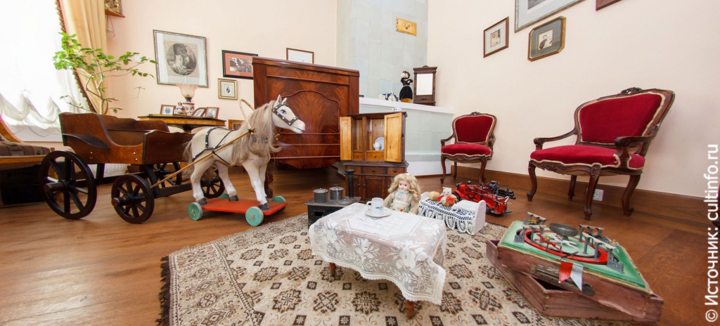 На первом этаже располагается выставка «Детство разных поколений». На втором – постоянная выставка, демонстрирующая убранство русской избы, и другие сменные выставки. Экспозиционный ряд дополняют ролевые игры с использованием интерактивных материалов. Здесь дети занимаются лепкой из глины и теста и изготовлением кукол-оберегов. В экспозиции находится рабочий гончарный круг, макет печки из кирпича. На базе этой выставки проводятся музейные уроки по школьной программе «Истоки». В сентябре 2014 года в Детском музее открылась новая экспозиция «Всего понемножку, или загадки музейного бельэтажа».