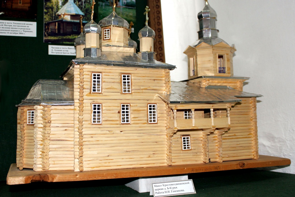 Украшают экспозицию макеты утраченных церквей, сделанные местным мастером Николаем Гомзиковым.