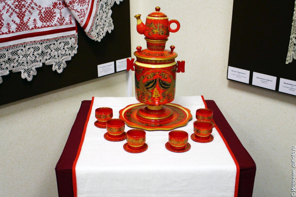 На базе колледжа уже 30 лет существует музейная экспозиция, в которой представлено более 300 изделий декоративно-прикладного искусства и народных промыслов – лучшие работы учащихся и выпускников образовательного учреждения. Это кружевные изделия: панно, салфетки, подзоры, палантины; образцы северных росписей: шекснинская золоченка, борецкая, гаютинская, кичменгско-городецкая, глубоковская, харовская, грязовецкая, мезенская, северодвинская, пермогорская, ракульская… Татьяна Титова, заведующая музеем, рассказывает, в чем заключаются особенности каждой росписи, какие смысловые и функциональные элементы их характеризуют. К примеру, по элементам мезенской росписи, изображающим животных (лошадей, оленей) на тонких ножках, раньше можно было прочитать годовой календарь: когда выпал снег, когда он растаял, когда прошел посев…
