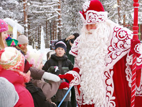 В Архангельске он поздравлял с днем рождения своего помощника Снеговика, посетил его дом, побывал в гостях у многодетной семьи, встретился с детьми школы искусств, а на главной площади города познакомил архангелогородцев с почетным гостем города – президентом Южной Осетии Эдуардом Кокойты.