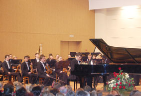 Всероссийские филармонические сезоны. В пресс-конференции, состоявшейся перед концертом, приняли участие первый заместитель Губернатора области И.А. Поздняков, начальник департамента культуры области Л.И. Кашина, советник руководителя Федерального агентства по культуре и кинематографии Российской Федерации, заслуженный работник культуры Российской Федерации Н.Г. Уварова, директор Московской Государственной академической филармонии, заслуженный артист России А.А. Шалашев, народный артист России Ю.Л. Кочнев, заслуженный артист России Д.Л. Мацуев, директор Вологодской филармонии имени В.А. Гаврилина, заслуженный работник культуры Российской Федерации В.П. Гончаров. В приветственном слове Иван Поздняков подчеркнул огромное значение контактов авторитетных художественных исполнительских коллективов России и слушателей Вологодской области. Вела пресс-конференцию Нина Уварова; в первую очередь она с благодарностью отметила внимание, уделенное проекту, понимание его важности со стороны Правительства Вологодской области, департамента культуры и руководства Вологодской государственной филармонии им. В.А. Гаврилина. Юрий Кочнев, чье детство и годы учебы прошли в Вологде, отметил, как преображается его родной город, движется вперед в соответствии с требованиями времени его художественная культура; говорил о просветительском долге музыкантов, их большой ответственности перед российским слушателем. «Страна дала нам профессию, сделала все для нас – теперь мы должны сделать все для России», - сказал в заключение Юрий Леонидович. Особенностью российской публики и ее коренным отличием от слушателей многих зарубежных стран столичные гости назвали искреннюю, непосредственную заинтересованность звучащей со сцены музыкой. Денис Мацуев поделился своими планами в области концертной деятельности, издания дисков с ранее неизвестными произведениями С. Рахманинова, организации фестивалей «Звезды на Байкале» и «Крещендо», выразил пожелание познакомиться с талантливыми юными исполнителями Вологды. Он отметил свое, особенно теплое отношение к нашему городу и готовность вновь и вновь выступать на концертных площадках Вологды: в зале музыкального колледжа или уникальном по своей акустике концертном зале Вологодской филармонии. В 18 часов в Вологодском музыкальном колледже начался концерт Академического симфонического оркестра Московской филармонии под управлением народного артиста России Юрия Кочнева, солист – заслуженный артист России Денис Мацуев. Выступления коллективов столь высокого ранга в последние годы нередко украшают музыкальную жизнь нашего города, но оркестр Московской филармонии впервые звучал на Вологодской земле. В рамках проекта «Всероссийские филармонические сезоны» симфонический оркестр предложил своим слушателям великолепную программу, включающую лучшие образцы мировой симфонической музыки. Концерт открылся Увертюрой М. Глинки к опере «Руслан и Людмила». Блестящая исполнительская форма оркестра, гениальная музыка первой русской сказочно-эпической оперы, воодушевление зала – все это создавало особенно праздничное настроение как оркестрантов, так и слушателей. Юрий Кочнев – народный артист России, известный оперно-симфонический дирижер, обладающий особенно выразительной графикой жеста, чу