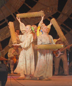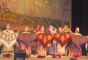 22 апреля на сцене ДК ПЗ выступил Государственный ансамбль «Русский Север» (художественный руководитель – заслуженный деятель искусств РФ Ю.М. Цепелев) с программой «Традиции и современность». Творческий коллектив представил зрителям единое яркое динамичное сценическое действие, созданное на основе обрядовых традиций и этнографического материала Северо-Запада России. В вологодском концерте артисты показали фрагменты творческих работ ансамбля разных лет: «У нас под Вологдой», «Соборная горка», «Фольклор плюс»; состоялся премьерный показ фрагмента творческого проекта «Новый календарь», основанного на календарных обрядах и праздниках. «Традиции и современность» - это синтез народного творчества с эстрадными направлениями музыки и хореографии. Поэтому второе отделение открыл проект «Русский лен» - сплав мелодического рока, традиционной народной музыки, современного танца модерн и народной хореографии, а также показ вологодского кружева и одежды изо льна. В исполнении артистов по-новому зазвучали такие хорошо известные всем поклонникам народного творчества песни, как «Калина красная», «Старый клен», «Расцвела сирень» и другие. Зрители почувствовали себя непосредственными участниками каждого представления, будь то ярмарочный день или полевые работы, молодежные забавы или проводы сына. Ощущению единения артистов со зрительным залом способствовали прекрасные костюмы и уникальные декорации.