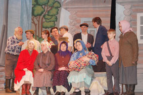 Мы все актеры-любители На сцене оживали персонажи всеми любимых произведений нашего известного земляка Василия Белова. Иван Африканыч, тракторист Лешка, Егорыч и многие другие. Все они словно со страниц его книжек – настоящие, живые, актеры как будто не играли спектакль, а просто жили, настолько естественно все выглядело. Хотя и актерами-то настоящими этих людей не назовешь, ведь ни у кого из них нет профессионального образования в этой сфере – задействованы в спектаклях были и школьники, и врачи, и учителя, и даже глава Администрации района. Наверно, этих людей объединяет не только любовь к театру, но и дружба, и уважение к творчеству известных земляков. Вот это все и собрало народные таланты в Детском музыкальном театре, где 19 и 20 апреля проходил заключительный этап V областного фестиваля народных театров имени И.Т Андреева «Театральный разъезд», посвященный 75-летию Василия Белова. Открытие его состоялось в ноябре 2006 года в селе Устье, и в течение полугода по всей области люди вновь читали книги Василия Белова, играли и смотрели спектакли по его произведениям. Всего в конкурсе приняли участие 17 народных театров и даже детские коллективы. Каждый из них по-своему увидел героев писателя, по-своему сыграл, но важно, что все они родом из той же «деревни», поэтому им были очень близки те ситуации, в которые попадали их персонажи. Ведь прототипы беловских героев по-прежнему живут на селе, поэтому и произведения нашего земляка все так же актуальны и современны. За те два дня, в которые прошли заключительные мероприятия фестиваля, зрители и его участники посмотрели пять спектаклей и фрагменты кинодраматической композиции. Это были спектакли «Добро. Ладно. Хорошо» Тарногского народного театра, «Слишком простая история» Чагодощенского народного театра, «Бессмертный Кащей» Кирилловского народного театра, «Мышонок, бабушка и кот» театрального коллектива ДК д. Гора Харовского района, «На бревнах» Устюженского народного театра. Все работы были своеобразны, в каждой ощущался творческий подход, и в каждом спектакле - своя изюминка, свое открытие. Но лучшим и жюри, и зрители признали спектакль «Добро. Ладно. Хорошо» Тарногского народного театра, руководитель - заслуженный работник культуры Нина Верцинская. Не отстали от него и спектакли Кирилловского и Устюженского народных театров. Премию за лучшую мужскую роль получил Владимир Жабреев (роль Парахвостова, спектакль «На бревнах»). Лучшая женская роль – Римма Окатова с ее героиней Настасьей из спектакля «Добро. Ладно. Хорошо». Лучшая мужская роль второго плана присвоена Владимиру Поздееву (Тарногский народный театр), а женская – Ольге Бороздиной (Кирилловский народный театр). Актеры получили премии и книги Василия Белова, которые достались в подарок и другим участникам фестиваля. Приятные минуты пережиты, спектакли сыграны, при чем