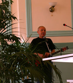 26 мая в Большом зале Вологодской областной научной библиотеки состоялся вечер, посвященный 5-летию открытия Медиа-зала. Далеко не в каждой областной библиотеке нашей страны есть подобный отдел, в котором собран уникальный кинофонд и прекрасная музыкальная коллекция, которые пополняются исходя из двух принципов: высокое художественное качество и актуальность. Читатели с самыми разными вкусами найдут здесь диски и кассеты для работы, отдыха, учебы; для себя, своих детей и родителей. Лучшие фильмы, самые известные спектакли, видеозаписи постановок, энциклопедии, в том числе мультимедийные, учебники, музыка – все это к услугам пользователей. Самым верным читателям и частым гостям медиа-зала в этот вечер были вручены подарки – книги и диски, а всем тем, кто пришел поздравить отдел с первым юбилеем, был посвящен концерт, в котором приняли участие Сергей Кузнецов (саксофон), Владимир Бобров (гитара), Анна Кузнецова (фортепиано) и фольклорный ансамбль под руководством Галины Парадовской.