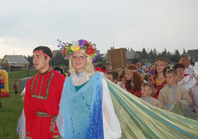 правительства Вологодской области и администрации села. В праздничном концерте приняли участие любимые коллективы Вологды и Вологодского района. Не давали скучать зрителям ансамбль «Встреча» (п. Сосновка), «Подснежники» (Непотяговский ДК), местный танцевальный коллектив и участники художественной самодеятельности, ансамбль «Россияночка», ансамбль народных инструментов «Русский сувенир», исполнительница народных песен Светлана Шадрунова, народный цирк ГДК. На бис не раз выходил дуэт баянистов «Мастер-класс». А участники ансамбля народного танца «Рябиночка» не забыли, что 22 июня началась Великая Отечественная война, и посвятили ветеранам танец «Станция победы». В это время любители активного отдыха могли принять участие в самых разных состязаниях: тут и метание копья, и силовые соревнования, и прыжки через скакалку, сражение с настоящими русскими богатырями на мечах, катание на лодках. Для самых маленьких участников гуляния была приготовлена игровая программа с хороводами и частушками, «Новленская карусель» и большой батут. И как полагается, закончилось гуляние костром и общей