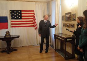 Цель экспозиции – через вещественные предметы передать историю становления и развития связей Череповца с Америкой. В основу выставки положены два исторических события – две официальные встречи.