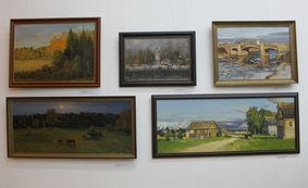 На выставке доминируют живописные и графические работы пейзажного жанра. Это, как правило, городские мотивы Вологды, Тотьмы, Великого Устюга или лирические ландшафтные пейзажи окрестностей Ферапонтова, Кириллова и села Никольского.