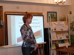 О том, что за страна такая Беларусь, что за люди в ней проживают и какие достопримечательности здесь можно увидеть, узнали старшеклассники 8 апреля 2011 года на внеклассном занятии в филиале Вологодской областной юношеской библиотеки им. В.Ф. Тендрякова. Такое мероприятие здесь прошло не случайно: оно приурочено ко Дню единения народов России и Беларуси.