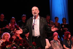 Первая часть праздника – озорной капустник, подготовленный актерами Театра для детей и молодежи. Хотя с самого начала тон мероприятию был задан «серьезный» – все «строго по регламенту»: суровый голос Бориса Александровича часто звучал «за кадром», пресекая любые попытки вклиниться в запланированный ход действа.
