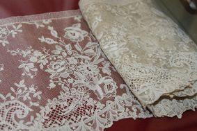 22 апреля 2011 года в Музее кружева открылась выставка «Очарование европейского кружева». На выставке представлены кружевные произведения из частной коллекции мадам Мик Фуриско, одного из основателей Центра изучения французского кружева г. Пюи (Франция), вице-президента Французской ассоциации кружева и вышивки, автора многочисленных изданий об этом промысле. Из огромного разнообразия коллекции для этой экспозиции были отобраны произведения ведущих центров кружевоплетения Франции, Бельгии, Голландии, Италии. Одним из уникальных экспонатов выставки стала часть королевского подзора «Триумф Нептуна», изготовленного в 1725 году. Подзор был разделен на три части. Одна из них находится в Национальном музее дизайна Cooper Hewit в Нью-Йорке (США), вторая – в Государственном музее Рейксмюзеум в Амстердаме (Нидерланды), а третья часть в данный момент экспонируется у нас в Вологде. В Европе кружево, представляющее собой ажурный орнамент, созданный путем различного переплетения нитей и существующий самостоятельно без какой-либо основы, появилось на рубеже XV-XVI вв. До этого времени в странах Западной Европы были известны различные виды ажурной вышивки, являющейся предшественницей кружева. Больше всего на кружево походила ажурная вышивка, выполненная в технике строчки по разряженному полотну, называется она – шов по прорези, а геометрический орнамент в виде кругов, звезд, розеток известен под названием «ретичелла». Первое кружево называлось образно – стежок в воздухе. Оно уже не имело в своей основе ткань, а выполнялось при помощи иглы петельным швом по узору, изображенному на бумаге. Одновременно или чуть позже появилось и плетеное на коклюшках кружево. Родиной кружева в Европе принято считать Италию, там уже в XVI веке печатались сборники узоров кружева как шитых иглой, так и плетеных. Первые кружева представляли собой узкую полоску с заостренными зубцами простейшего геометрического орнамента, которую использовали для обрамления накрахмаленных воротничков и манжетов. В дальнейшем совершенствовалась техника кружевоплетения, увеличивался размер полоски, зубчики становились длиннее, а узор – сложнее. Большое распространение получили узоры с библейским сюжетом, с изображением мифологических сцен и персонажей. К началу XVII века популярностью стал пользоваться гипюр, т.е. кружево, где узор соединяется тонкими связками, особенно производством его славилась Венеция. Вслед за Италией кружево появляется во Фландрии (Бельгии). В XVII веке в городе Бенш начинают изготавливать плетеное кружево, тонкое и лишенное рельефа, получившее название «бенш». Его отличительной чертой считается особый узор сетки фона, напоминающий мерцающие звездочки снежинок («снежный фон»). В первой половине XVIII века совершается переход к тюлевому кружеву, в котором орнамент соединяется прозрачной тонкой сеткой с ячейками одинакового размера. Во Фландрии центром кружевоплетения становится Брюссель, изготовлявшиеся там плетеные кружева на тюлевом фоне были хорошо известны в Европе и получили название англеттер (английское). И это не случайно: английский Парламент с целью поощрения местного производства запретил ввоз в Англию фламандских кружев, но так как те были лучше английских и спрос на них выше, то купцы прибегали к контрабанде и продавали фламандское кружево 