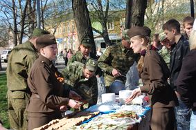 В Кировском сквере развернулся «Солдатский привал» с полевой кухней, где главным блюдом стала гречневая каша да 100 фронтовых граммов. Для ветеранов выступили творческие коллективы, победители городских конкурсов «Солдатская песня», «Песни в военных шинелях», представившие вокальные, хореографические номера, театрализованные миниатюры, стихи на военную тематику.