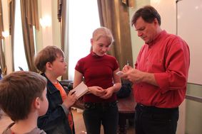 Где-то с юмором, где-то со всей серьезностью гость отвечал на вопросы собравшихся: детей, их родителей, педагогов.
