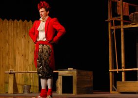 21-22 сентября 2011 года в Вологодском ордена «Знак Почета» государственном драматическом театре прошли гастрольные спектакли Рыбинского драматического театра. В наш город гости привезли две постановки: «Очень простая история» для взрослых и «Волшебное кольцо» для маленьких зрителей. Режиссер спектаклей Денис Кожевников. Рыбинский драматический театр имеет богатую историю, официальной датой его основания считается 1825 год, когда сформировался постоянный актерский состав. В разные годы в театре блистали В. И. Живокини, М. С. Щепкин, В. Ф. Комиссаржевская и другие. Спектакль «Очень простая история» по пьесе Марии Ладо вологжан тронул до слез: здесь было над чем посмеяться, над чем поплакать и тем более над чем задуматься. История проста, где-то наивна, где-то трогательна и вполне реальна, ведь может произойти с кем угодно. Главная «героиня» спектакля – Любовь, она живет в сердце каждого участника этой истории. Пусть даже спрятанная в самом затаенном уголке души, но она есть. Сюжетной линией спектакля стала история любви Даши (Мария Сельчихина) и Алексея (Владимир Калюкин). Молодые, ищущие счастья… Казалось бы, что может помешать их любви? Но вражда между соседями – отцами влюбленных - чуть не привела к беде: лишению жизни еще не родившегося человека. Против «убийства» выступили животные – обитатели двора, для которых детеныш – будь то щенок, теленок, жеребенок, поросенок - то же, что ребенок, и пусть он еще не родился, но ни у кого нет такого права - лишать его возможности прийти в наш мир. Животные - чистые божьи существа, они, как люди, здесь общаются между собой, они искренне любят своих хозяев, и, не видя в них плохого, готовы умереть за них. Недаром после смерти они становятся ангелами. Свинья (Дарья Кошелева), которую зарезал хозяин (Юрий Задиранов), превратилась в именно такого ангела и зла на него за этот поступок не держит. Разговоры животных слышит и понимает только сосед-пьяница (Василий Лугинин), который один единственный пытается отговорить людей от «убийства». Душа его чиста, хоть за ней нет ни гроша. Именно он произносит самые главные в спектакле слова: «Да кто я такой? Какой такой особенный, что буду жизни лишать. Я ее давал!? Я вас спрашиваю!?» Это обращение не только к участникам истории, но в первую очередь к зрителю. Он не смог убить лошадь, готовую умереть ради спасения малыша, а вот себя жизни духу хватило лишить, чтобы стать ангелом-хранителем для внучки. Этот поступок, значения которого люди не видят (ведь для них он просто застрелился), помог всем: родился новый человек – внучка Маруся. Жертва была ненапрасной: в душе каждого проснулась любовь, настало просветление. Актеры замечательно создали образы своих героев. Нрав, повадки животных переданы очень точно. Трогательная и наивная Свинья, мечтающая летать, в исполнении Дарьи Кошелевой или обаятельный Петух (Сергей Молодцов), самый умный и голосистый в округе, но очень трусливый, или мудрая, видавшая жизнь лошадь Сестренка, которую сыграла Алла Онуфриенко. Характеры людей как будто «срисованы» с картин деревенской жизни: свидания веселой Даши и недотепы Алешки, ссоры между соседями. Строг и настойчив Юрий Задиранов в роли отца Дашки, мягок и порою жалок его сосед, которого сыграл Василий Лугинин. В завершение спектакля зал аплодировал стоя, настолько за эти два часа ему полюб