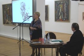Сотрудники галереи подготовили презентацию, включившую фотографии А. В. Пантелеева. Ирина Балашова прокомментировала их и рассказала интересные факты из жизни художника.