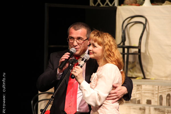 Звездой вечера стала заслуженная артистка РФ, лауреат Государственной премии Вологодской области Елена Авдеенко. Актриса работает в театре почти 30 лет и в прошлом году отметила свой юбилей. Созданные ею за это время образы любимы многими зрителями. Поэтому в этот день практически все цветы достались именно Елене Авдеенко, да и немало теплых слов она услышала в свой адрес. Актрису поздравили начальник Департамента культуры и охраны объектов культурного наследия области Всеволод Чубенко и другие официальные лица, ансамбль народной песни Вологодской областной филармонии «Солнцеворот», коллеги из регионального отделения Союза театральных деятелей России, Вологодского областного драматического театра, театра кукол «Теремок» и родного ТЮЗа. А новый спектакль, в котором Елена Авдеенко сыграла сразу несколько ярких ролей, стал замечательным подарком к юбилею актрисы.