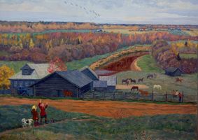 17 февраля 2012 года в Центральном выставочном зале Вологодской областной картинной галереи открылась выставка живописи заслуженного художника России Евгения Соколова «Времена года», посвященная 75-летию автора. Казалось бы, ничего необычного нет в его картинах. Стоит отъехать километров десять от города – увидишь и эти жиденькие перелески, и пологие холмы, и маленькие болотца, и густой лес на горизонте. А если время позволяет – вот оно Ферапонтово, вот оно Бородаевское озеро. И все это видено-перевидено, так знакомо и привычно, что кажется, никто ничего нового тебе об этих местах не скажет. Но у каждого полотна Евгения Соколова почему-то хочется остановиться – всмотреться, вслушаться и как будто что-то вспомнить – что-то очень важное... Уникальный мастер русского лирического пейзажа, продолжатель традиций Саврасова, Левитана и Феодосия Вахрушова – так говорят о нем искусствоведы. Выпускник Ярославского художественного училища, Евгений Соколов около двадцати лет отдал работе в Череповце, более тридцати лет живет в Вологде и на протяжении нескольких десятилетий «болеет» Ферапонтовым – удивительной природой этих мест и нетленной красотой фресок Дионисия. Член регионального отделения Союза художников России с 1965 года, он был неизменным участником всех его выставочных проектов и, как отметил председатель Вологодского отделения Союза художников заслуженный художник РФ Николай Мишуста, наравне с Владимиром Корбаковым, Джанной Тутунджан и Николаем Баскаковым создавал «художественный авторитет» Вологодчины. В его внешне простых пейзажах – сокровенная глубина смысла, близкого и понятного русской душе, тихая задумчивость и затаенная грусть – такая же, как в стихах Николая Рубцова, с которым Соколов творит как будто «на одной волне». Неслучайно свое приветствие начальник Департамента культуры и охраны объектов культурного наследия области заслуженный артист РФ Всеволод Чубенко начал с чтения рубцовских строк.