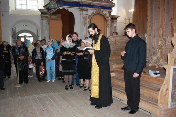 Отец Игнатий, настоятель Кирилло-Белозерского монастыря, провел обряд освящения копии иконы Богоматери Умиления (Белозерской), после чего все присутствующие в храме православные смогли приложиться к святому образу.