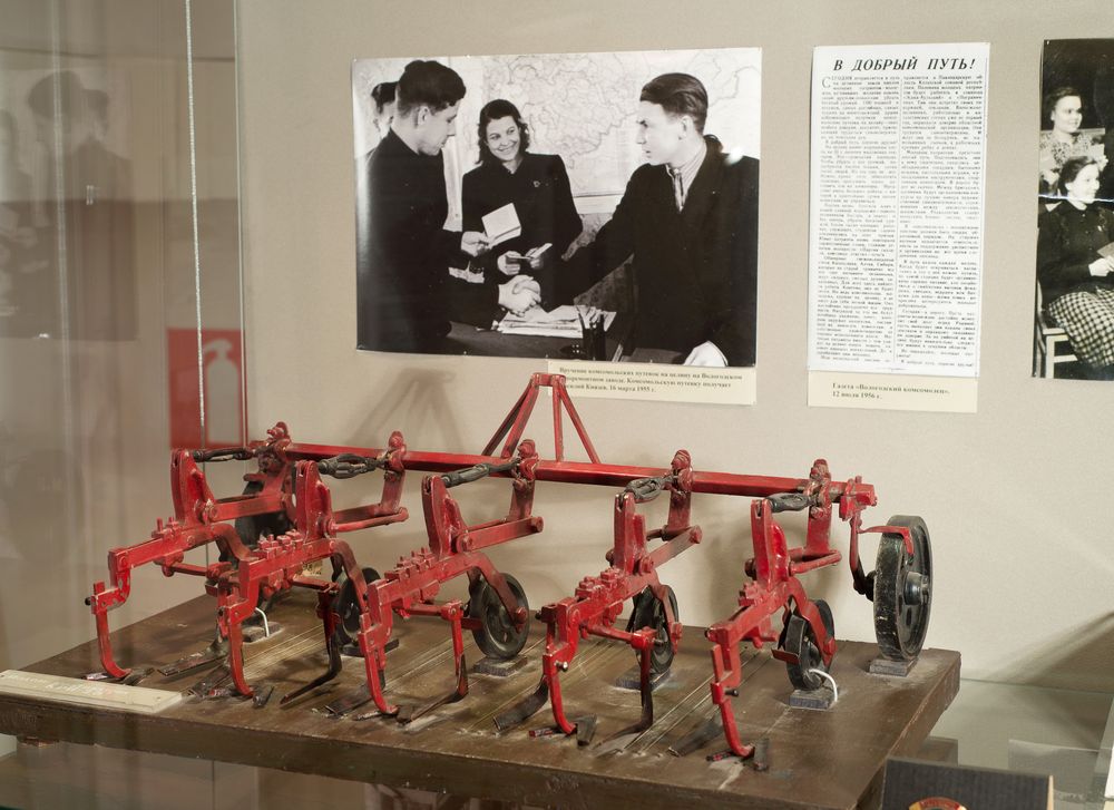 «Ударные комсомольские» В Вологодском кремле открылась выставка «Ударные комсомольские», посвященная 95-летию коммунистического союза молодежи. Основу экспозиции составили фотографии, документы, медали и памятные знаки. На выставке представлены материалы об известных комсомольцах: покорителях целины (среди бумаг – фото бывшего директора Вологодского государственного музея-заповедника Галины Новожиловой, награжденной грамотой ЦК ВЛКСМ за уборку урожая в 1956 году на целине); строителях Волго-Балта (документы Ивана Башкирцева, бетонщика шлюза №1, секретаря комитета комсомола Волгобалтстроя); строителей и рабочих Череповецкого металлургического комбината, в частности домны–гиганта №5 (памятный экспонат – лента участника 1-й плавки с автографом). Информация Вологодского музея-заповедника | ||