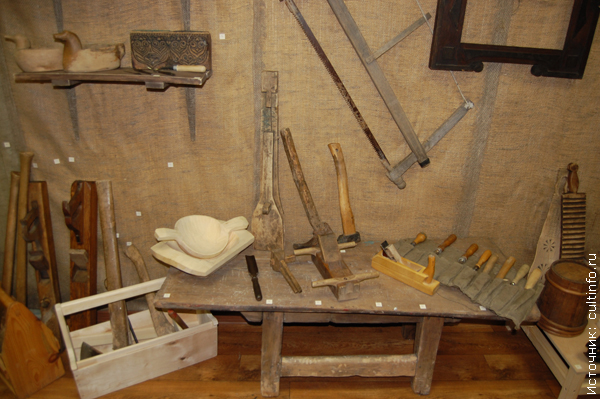В экспозиции представлены инструменты, необходимые для обработки дерева, золочения, плетения корзин, изготовления керамической посуды, плетения и тиснения по бересте, сапожного дела, валяния, ковки, приспособления для рыболовства и охоты. Некоторые экспонаты датированы XXXV-X вв. до н.э., XVI-XX вв.