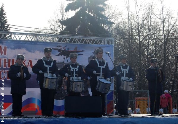 Праздник продолжился театрализованной тематической программой «Готов служить России». В нем приняли участие творческие коллективы города: ансамбль военных барабанщиков и барабанщиц Вологодского института права и экономики, группа «Романтика» и студия народного танца «Рябинка» Городского Дворца культуры, ансамбль казачьей песни «Беловодье», мужской хор и солисты народного хора ветеранов Дома культуры льнокомбината.
