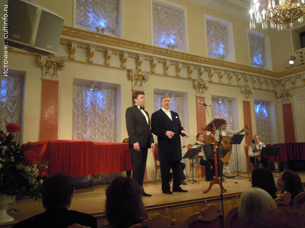 Заслуженный артист России, тенор Анатолий Колбёшин уже знаком нашим любителям песни: в прошлом сезоне он с успехом исполнял на вологодской сцене старинные романсы. Опытный певец, в весьма почтенном возрасте сохранивший необычайную красоту и силу своего голоса, он мастерски владеет его достоинствами и, кажется, не поет, а непринужденно напевает, делясь со слушателями собственными чувствами и переживаниями. Баритон Александр Суханов более молод. Он – недавний выпускник дирижерско-хорового отделения консерватории, и потому так хорошо чувствует «дыхание» музыки! Чутко аккомпанировал певцам и щедро солировал в программе Губернаторский квартет русских народных инструментов «Серпантин», с успехом выступавший в Италии на международном фестивале народной музыки, – коллектив гибкий, гармоничный, владеющий большим репертуаром из фантазий на темы итальянских, испанских и бразильских песен. А выступления певцов лишний раз убеждали, насколько близка и популярна в среде российских слушателей итальянская песня, как хорошо мы знаем искусство многих ее исполнителей. Кроме бесспорных шлягеров «О, мое солнце», «Вернись в Сорренто», «Скажите, девушки, подружке вашей», «На качелях» или «Влюбленный солдат», Анатолий Колбёшин выразительно напомнил также ряд редко исполняемых мелодий, как, например, «Морячок» автора-любителя А. Гамбарделли и шлягеры непревзойденного исполнителя итальянской песни в России Михаила Александровича «Ночное танго» В. Маттео или известное сочинение В. Кьяры «Гордая прелесть осанки»… Александр Суханов доставил большое удовольствие слушателям, исполнив романс Р. Леонковалло «Рассвет», песни «Белла Донна» Г. Винклера и «Мне не забыть тебя» Э. де Куртиса. Элла Кириллова