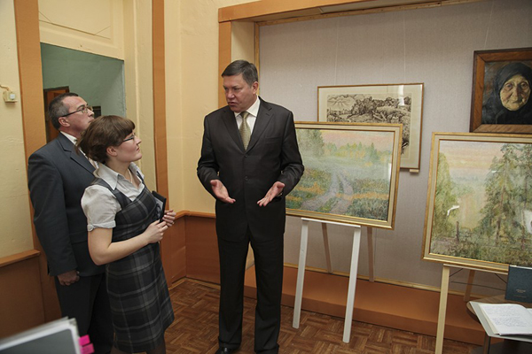 Губернатор области передал в дар музею два произведения заслуженного художника России Николая Мишусты «Утренняя дорога на Бобришный угор» и «Рассвет на Бобришном угоре».