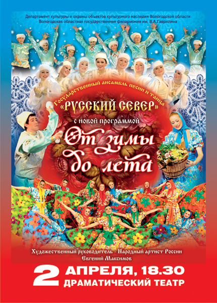 2 апреля 2013 года на сцене Вологодского областного драматического театра Государственный ансамбль песни и танца «Русский Север» представит новую программу «От зимы до лета». Начало в 18.30.