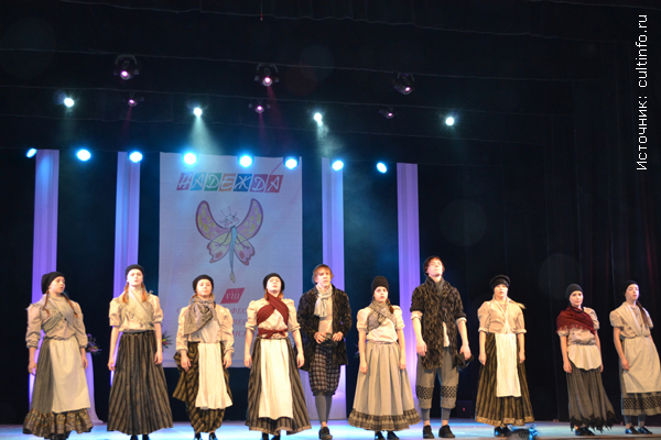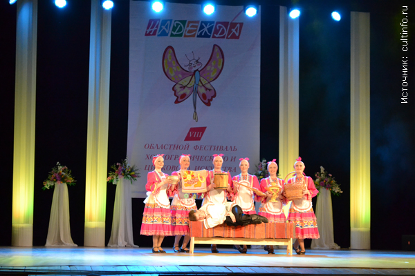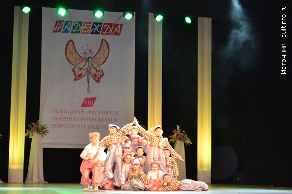 6 апреля 2013 года во Дворце культуры подшипникового завода г. Вологды не смолкали аплодисменты – здесь прошли заключительные мероприятия VIII Областного фестиваля хореографического и циркового искусства «Надежда»: завершающий отборочный тур и гала-концерт. Учредителями и организаторами фестиваля выступили Департамент культуры и охраны объектов культурного наследия Вологодской области и Областной научно-методический центр культуры и повышения квалификации. Впервые Областной фестиваль хореографического и циркового искусства «Надежда» состоялся в 1993-ем году в Вологде – главный приз тогда получила самая юная участница из Сокола. Позже она вместе с мамой переехала в Вологду и во Дворце культуры железнодорожников познакомилась со своим партнером по танцам. Сегодня чемпионами мира по спортивным бальным танцам Анной Кузьминской и Андреем Зайцевым гордится вся Вологодчина. VIII Областной фестиваль-конкурс «Надежда» проводился в Вологодской области с марта 2012 года по апрель 2013 года. На конкурс было заявлено более 100 коллективов, просмотрено 196 номеров, на сцене показали свое творчество 1350 участников. В заключительном отборочном туре приняли участие победители шести зональных туров, которые прошли в муниципальных районах области, в Вологде и Череповце. Конкурсная программа прошла по двум возрастным категориям – дети до 13 лет, молодежь от 14, по номинациям: «Народно-сценический танец», «Современная хореография», «Бальный танец», «Цирковое искусство», «Солист». На гала-концерте выступили лучшие из лучших – победители заключительного отборочного тура. Они показали феерическое шоу, от которого пришли в восторг и взрослые, и дети. Очаровательные артисты из Детского хореографического коллектива «Надежда» (Федотовская средняя общеобразовательная школа, п. Федотово Вологодского района) представили программу «Всем на свете нужен дом». Русские матрешки – одна другой краше – народного танцевального коллектива «Рассвет» Верховажского районного Дома культуры заставили зрителей улыбаться от умиления. Артистки народного танцевального коллектива «Душа» Кадниковского Дома культуры (г. Кадников) показали, как жили на Вологодчине задорные, веселые, жизнерадостные женщины. Никого не оставили равнодушным «Ванькины грезы» народного танцевального коллектива «Радуница» (Череповецкий район). Что снилось доброму молодцу Ивану, когда он засыпал? Красны девицы в нарядных платьях да цветных платочках, с вкусными пирогами да плетеными корзинками, с расшитыми рушниками да глиняными чугунками... Гостей фестиваля покорили как маленькие «дикари» в звериных шкурах школы-студии современной хореографии балета «Хобби» Городского дворца культуры «Аммофос» (г. Череповец), так и мужчины из танцевального коллектива «Радуга» (г. Грязовец), которые выступили с программой «Мужские страдания». Воздушные гимнасты образцового детского коллектива цирковой студии «Каскад» Дворца детского и юношеского творчества имени А.А. Алексеевой (г. Череповец) рассказали о первой любви и детской дружбе. Акробатические трюки и цирковые номера также показали артисты Детской школы искусств «Пируэт» (г. Вологда), народного цирка «Пируэт» Дворца культуры «Строитель» им. Д.Н. Мамлеева (г. Череповец). Неслучайно фестиваль носит такое громкое, жизнеутверждающее название 