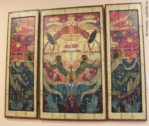 На языке картин Дмитрия Санджиева Мифы как отголоски древних миров и цивилизаций, всегда находившие отражение в произведениях мирового искусства, популярны и по сей день. Сказания, передающие представления людей о мире, месте человека в нем, о происхождении всего сущего, богах и героях, воплотились в картинах заслуженного художника России, действительного члена Российской академии художеств Дмитрия Санджиева на выставке «Мифы планеты», которая открылась 12 апреля 2013 года в Доме Корбакова. Всего в экспозиции представлено более 100 графических и живописных произведений. Московский гость, друг и собрат вологодских мастеров изобразительного искусства Дмитрий Санджиев родился в семье художников. Его мама, Анна Степановна Москвина, работала художником-оформителем. Отец, Никита Амолданович Санджиев, – известный калмыцкий скульптор, народный художник РФ. Младший Санджиев окончил Ярославское художественное училище, Московский художественный институт имени В.И.Сурикова, учился в аспирантуре Академии художеств СССР. Успех пришел к Дмитрию Санджиеву на последнем курсе МГХИ имени В.И.Сурикова в 1981 году. На всесоюзной выставке произведений молодых художников в Академии художеств СССР была показана его дипломная графическая серия «Вдова чабана», раскрывающая образ Родины, исторические реалии жизни калмыцкого народа. Каждая встреча с мастером РАХ в областной картинной галерее и ее филиалах – большое культурное событие для Вологодчины, подчеркнул директор ВОКГ Владимир Воропанов. Такие мероприятия утверждают высокие идеалы творческого служения, связь великих классических традиций российского искусства с сегодняшним днем. На выставке Дмитрия Санджиева можно увидеть как строгие, суровые, реалистические графические работы, так и фантастические, бушующие красками живописные картины. Как в воображении мастера могут уживаться столь разноликие образы и мотивы? В Доме Корбакова представлено более 40 лучших графических работ Санджиева: «Вдова чабана» и «Первый самолет» из серии «Вдова чабана», «Актер» и «Каскадерша» из серии «Снимается кино», «Аннушка» и «Воланд» из серии «Мастер и Маргарита» и др. Анималистические рисунки «Птица счастья» и «Преследование» из серии «Братья наши меньшие» не только излучают любовь художника к животным, но и имеют серьезную философскую основу. Нередко человек тратит всю жизнь на то, чтобы найти свою птицу счастья и крепко-накрепко закрыть ее клетке… Народный художник России Владимир Корбаков рассказал интересный факт, что ему долго не удавалось нарисовать… ворона, в то время как Дмитрий Санджиев умело запечатлел эту мифическую птицу на своих полотнах. Секрет мастерства художника заключается в его доброте: он приютил раненого ворона, вылечил, написал его портрет и отпустил на волю. Мир животных оживает не только на графических, но и на живописных работах художника. Портрет любимой кошки Мони, созерцающей фантастический мир, населенный бабочками неземной красоты, огромными динозаврами и мелькающими вдали птеродактилями, Дмитрий Санджиев подарил Вологодской областной картинной галерее. Влюбленные жирафы, «кошкопад», пролетающая над полем птица – эти и многие другие образы навевают мысли о мгновениях, которые автор сумел остановить и запечатлеть на своих картинах. Анималистические и антро